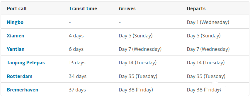 In summary, in terms of sailing time from China side Shenzhen and Shanghai.